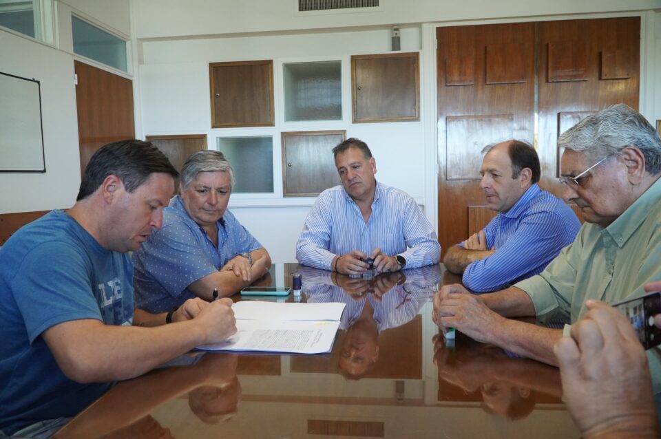 El ministro de Gobierno y Asuntos Municipales, Pascual Fernández, acompañado por el subsecretario de Cooperativas y Mutuales, Fabián Bruna, firmó el convenio con los integrantes del consejo de administración de la entidad encabezados por el presidente Mario Gribaudo.