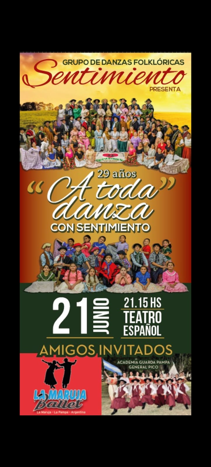 Este próximo sábado 21, acompañando al Grupo Sentimiento en el festejo de sus 29 años , la Agrupación Folklórica «La Maruja Ballet» estará presentando » CON ROSTRO DE MUJER». Esta nueva puesta en escena de bailarinas revaloriza a la mujer desde la historia , la poesía y el mito.