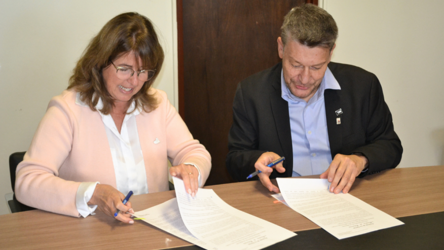 La ministra de Educación, Marcela Feuerschvenger, y el rector de la Universidad Nacional de La Pampa, Oscar Alpa, firmaron esta mañana un convenio que establece la coordinación de acciones para impulsar ofertas académicas que puedan ser incluidas en la categoría de Postítulos: Actualización Académica.